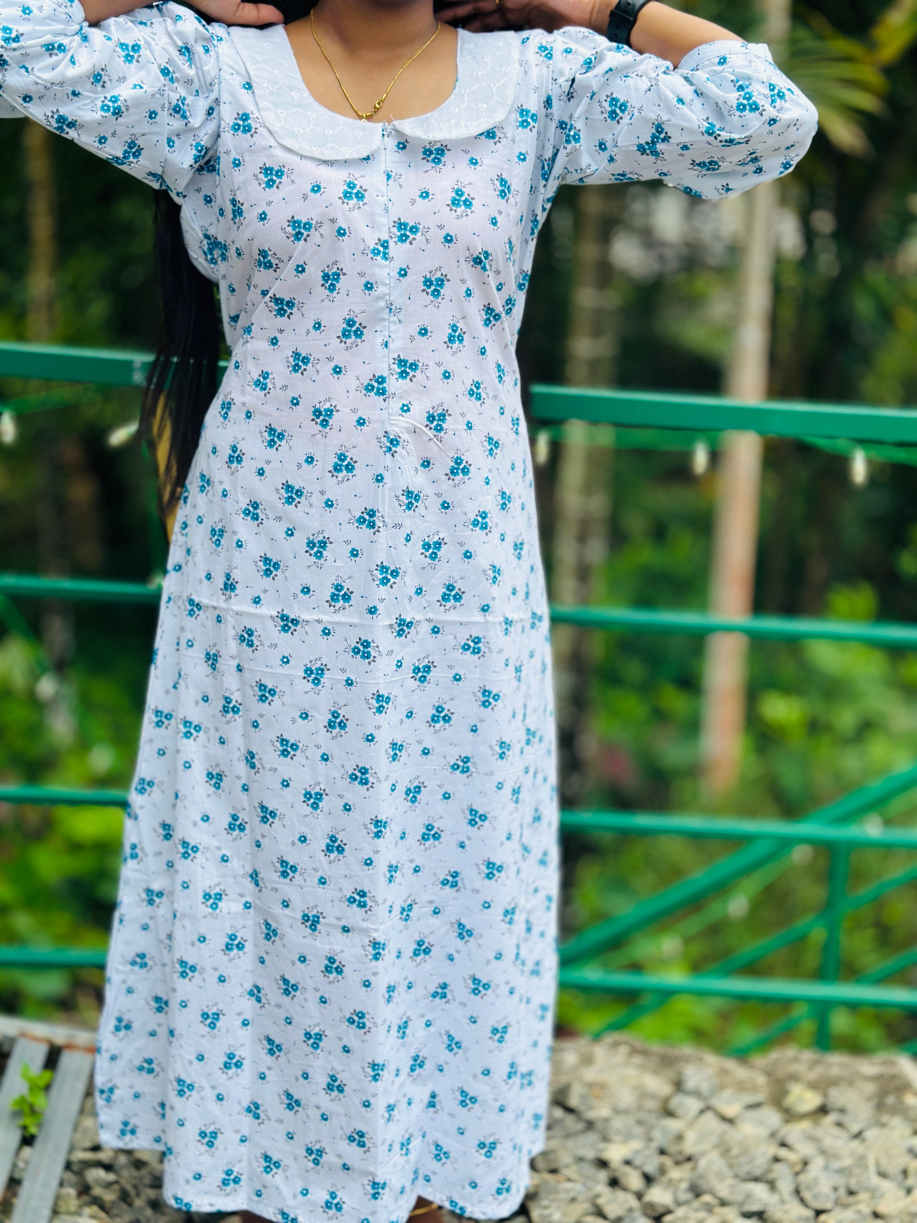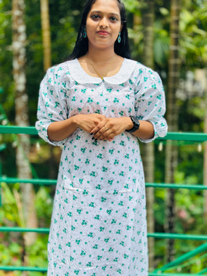 3/4 sleeve Peterpan feeding frock in free size &length 48”