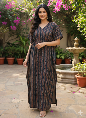 These premium cotton feeding kaftans feature concealed nursing access panels for discreet breastfeeding. The lightweight, breathable fabric wicks moisture and regulates temperature, while the loose-fitting design offers unrestricted movement and postpartum comfort. Thoughtfully constructed with reinforced seams for durability through multiple wash cycles.