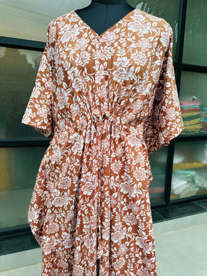 Premium floral kaftan in jaipur cotton fabric with centre zip