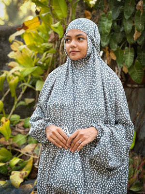 Our one-piece prayer jilbab offers complete coverage with a streamlined design that eliminates the need for separate garments during salah. Crafted from breathable fabric that drapes elegantly, this prayer dress features an integrated headcover and generous proportions to ensure proper movement during prostration while maintaining modesty throughout your prayers.