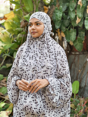 Our one-piece prayer jilbab offers complete coverage with a streamlined design that eliminates the need for separate garments during salah. Crafted from breathable fabric that drapes elegantly, this prayer dress features an integrated headcover and generous proportions to ensure proper movement during prostration while maintaining modesty throughout your prayers.