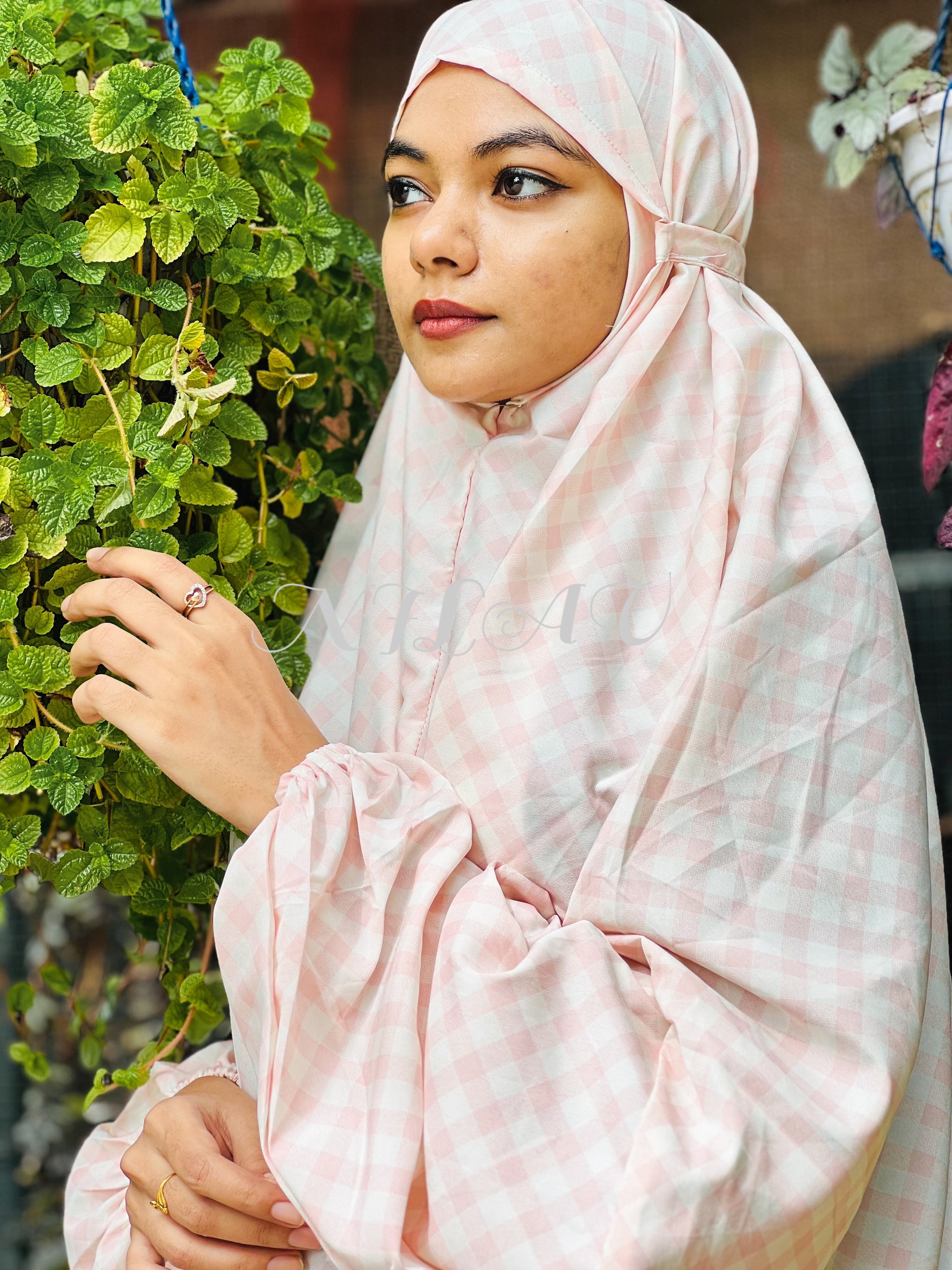 Our one-piece prayer jilbab offers complete coverage with a streamlined design that eliminates the need for separate garments during salah. Crafted from breathable fabric that drapes elegantly, this prayer dress features an integrated headcover and generous proportions to ensure proper movement during prostration while maintaining modesty throughout your prayers.