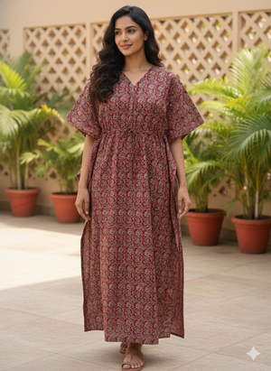 These premium cotton feeding kaftans feature concealed nursing access panels for discreet breastfeeding. The lightweight, breathable fabric wicks moisture and regulates temperature, while the loose-fitting design offers unrestricted movement and postpartum comfort. Thoughtfully constructed with reinforced seams for durability through multiple wash cycles.