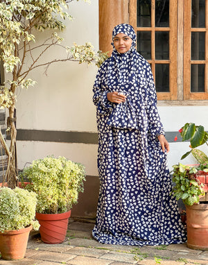 Our one-piece prayer jilbab offers complete coverage with a streamlined design that eliminates the need for separate garments during salah. Crafted from breathable fabric that drapes elegantly, this prayer dress features an integrated headcover and generous proportions to ensure proper movement during prostration while maintaining modesty throughout your prayers.