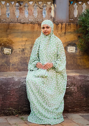 Our one-piece prayer jilbab offers complete coverage with a streamlined design that eliminates the need for separate garments during salah. Crafted from breathable fabric that drapes elegantly, this prayer dress features an integrated headcover and generous proportions to ensure proper movement during prostration while maintaining modesty throughout your prayers.