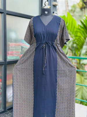 These premium cotton feeding kaftans feature concealed nursing access panels for discreet breastfeeding. The lightweight, breathable fabric wicks moisture and regulates temperature, while the loose-fitting design offers unrestricted movement and postpartum comfort. Thoughtfully constructed with reinforced seams for durability through multiple wash cycles.