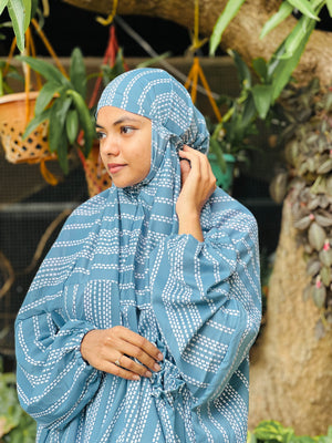 Our one-piece prayer jilbab offers complete coverage with a streamlined design that eliminates the need for separate garments during salah. Crafted from breathable fabric that drapes elegantly, this prayer dress features an integrated headcover and generous proportions to ensure proper movement during prostration while maintaining modesty throughout your prayers.