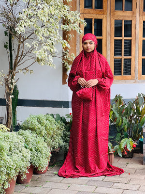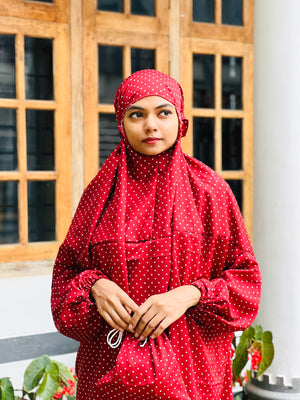 Our one-piece prayer jilbab offers complete coverage with a streamlined design that eliminates the need for separate garments during salah. Crafted from breathable fabric that drapes elegantly, this prayer dress features an integrated headcover and generous proportions to ensure proper movement during prostration while maintaining modesty throughout your prayers.