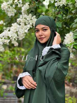 Our one-piece prayer jilbab offers complete coverage with a streamlined design that eliminates the need for separate garments during salah. Crafted from breathable fabric that drapes elegantly, this prayer dress features an integrated headcover and generous proportions to ensure proper movement during prostration while maintaining modesty throughout your prayers.