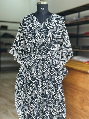 Premium zigzag print kaftan in jaipur cotton fabric with centre zip