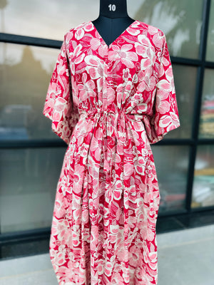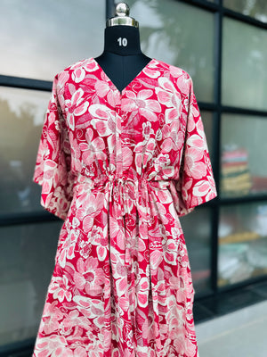 Premium floral kaftan in jaipur cotton fabric with centre zip