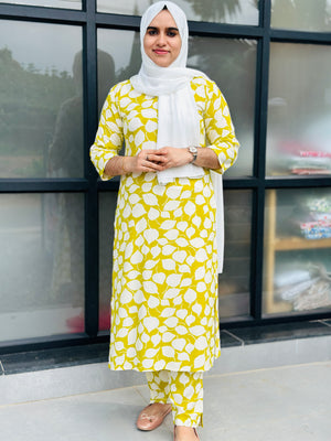 RAYON COORDSET SIDE SLITTED -YELLOW