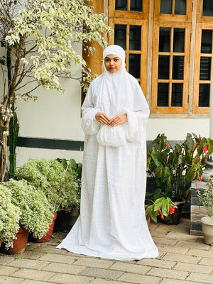 Our one-piece prayer jilbab offers complete coverage with a streamlined design that eliminates the need for separate garments during salah. Crafted from breathable fabric that drapes elegantly, this prayer dress features an integrated headcover and generous proportions to ensure proper movement during prostration while maintaining modesty throughout your prayers.