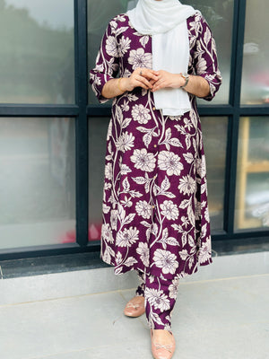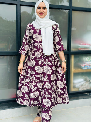 VATICAN COTTON SILK FLORAL A-LINE COORDSET -WINE