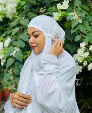 White premium crepe prayer dress with big lace