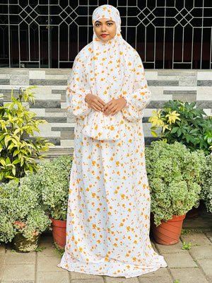 Yellow Floral white prayer dress